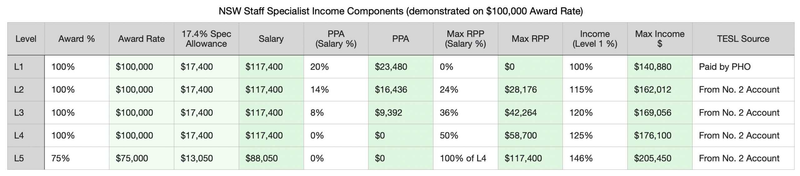 Source: NSW Health. Staff Specialist (State) Award Salary Increases and Staff Specialists (State) Award 2022